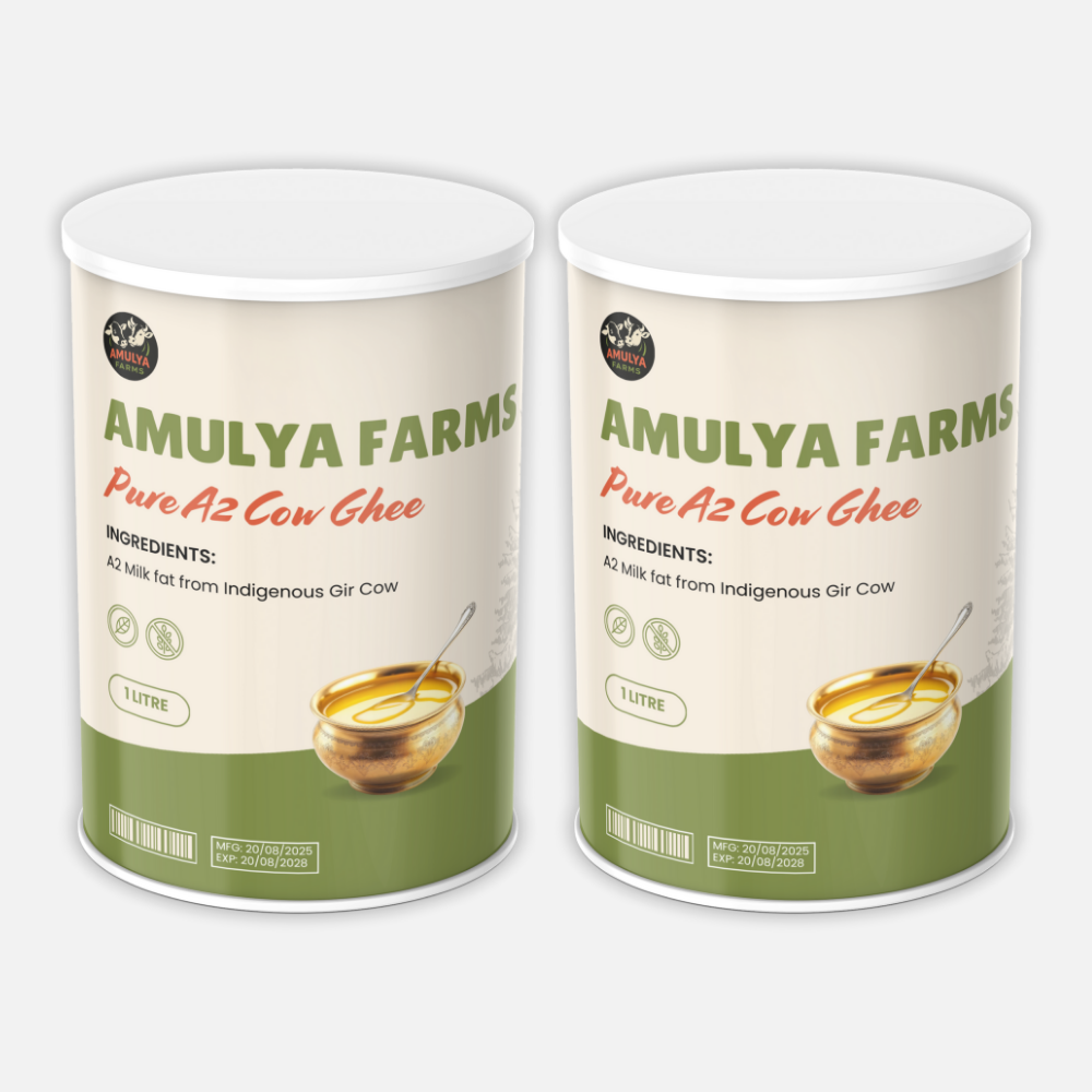 Our Desi A2 Cow Ghee is made from the milk of indigenous desi cows, prepared using the age-old bilona method. This ensures that you get pure, natural, and nutrient-rich ghee—free from additives and preservatives.